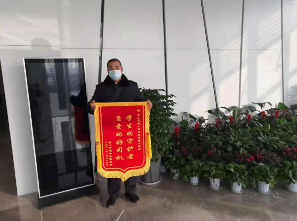 一名家長(zhǎng)代表對(duì)我們說(shuō):“送來(lái)這面錦旗就是想感謝張紹勝師傅這個(gè)學(xué)期對(duì)孩子們的關(guān)心和照顧,一個(gè)學(xué)期以來(lái),他每天都能按時(shí)接送孩子們上學(xué)、放學(xué),從來(lái)沒(méi)有遲到過(guò)。遇到雨雪天氣,他還會(huì)提前到達(dá)學(xué)校和小區(qū)門口等待孩子們,平時(shí)要是發(fā)現(xiàn)車上孩子身體不舒服或東西遺落在車上,都會(huì)第一時(shí)間和我們家長(zhǎng)聯(lián)系。通過(guò)他的細(xì)致管理和耐心引導(dǎo),乘車環(huán)境有了較大的改善,車廂內(nèi)再也沒(méi)有大聲喧嘩的情況,也沒(méi)有嘻笑打罵的現(xiàn)象,孩子們都說(shuō)現(xiàn)在坐在車上能得到很好的休息,坐車就是一種享受。”