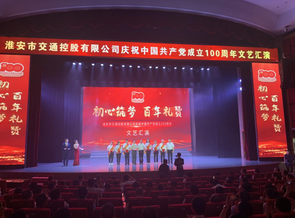 為熱烈慶祝中國共產(chǎn)黨成立100周年,深入開展黨史學習教育,6月22日,由淮安市交通控股公司主辦的“初心筑夢 百年禮贊”——建黨100周年文藝匯演在淮安市文化館隆重舉行。市交通控股公司副總經(jīng)理、公司黨委書記、董事長莊德軍,公司黨委副書記、總經(jīng)理孫智敏及領(lǐng)導班子成員出席活動,“兩優(yōu)一先”表彰人員,各部門、各分公司負責人,優(yōu)秀共產(chǎn)黨員代表共計40余人觀看演出。