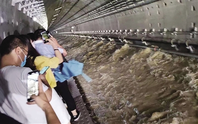 7月20日晚,隧道里的積水漫過軌道。 受訪者供圖