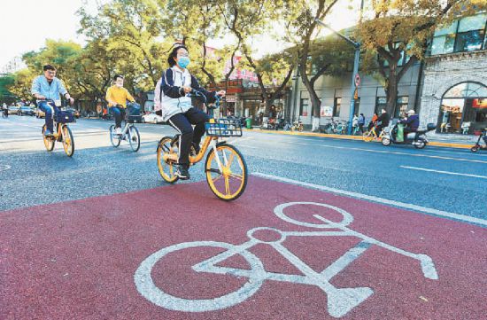 北京交通發(fā)展研究院日前發(fā)布的調(diào)查數(shù)據(jù)顯示,今年以來,城六區(qū)新街口外大街等多條道路,早高峰1小時騎行量突破3000輛次。為了打造景美路暢的騎行、步行環(huán)境,本市每年給慢行系統(tǒng)“體檢”,各城區(qū)通過創(chuàng)新設(shè)置“限速區(qū)”、拓寬非機(jī)動車道步道等方式,吸引越來越多市民“零碳”出行。