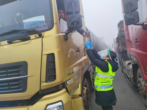 1月12日,因受大霧惡劣天氣影響,湖北交投普濟(jì)收費站對入口進(jìn)行交通管制達(dá)14個小時,看著面前焦急等待的司機,普濟(jì)管理所組織人員為滯留車輛送去開水、食品,讓他們在寒冷的冬天的感受春日暖陽。