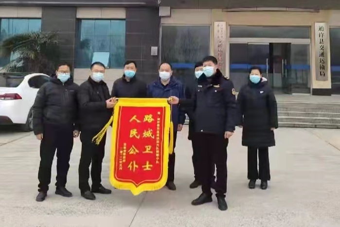 1月19日,通許縣玉皇廟鎮(zhèn)黨委、鎮(zhèn)政府將一面繡有“人民公仆,路域衛(wèi)士”的一面錦旗送到了通許縣交通局,感謝縣交通局的執(zhí)法工作隊(duì)員為鎮(zhèn)的“兩違整治”工作呈現(xiàn)出新的環(huán)境,表示誠摯的感謝!