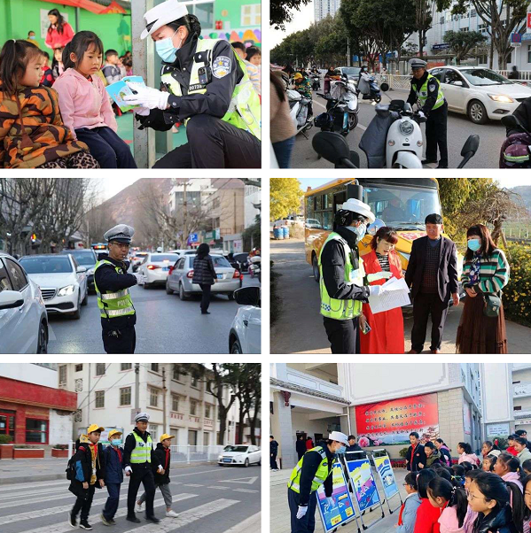 針對新學(xué)期開學(xué)的實際,為維護(hù)學(xué)校門口及周邊道路良好交通秩序,嚴(yán)防發(fā)生涉及學(xué)生的交通事故,守護(hù)學(xué)生出行安全,云南省大理州各級公安交警部門結(jié)合轄區(qū)各中小學(xué)校實際情況,創(chuàng)新管理手段,拓展護(hù)學(xué)形式,努力在交通安全宣傳、學(xué)生上學(xué)放學(xué)護(hù)送、校園周邊交通設(shè)施等工作上下功夫,著力解決校園門前交通堵、秩序亂等難題,切實加強(qiáng)新學(xué)期校園及周邊道路交通管理。