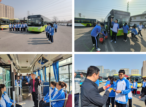除了安全知識課堂外,車隊管理人員還向?qū)W生們介紹了公交駕駛員每日清理車廂的流程,車隊黨員、團員帶領(lǐng)學(xué)生共同清理了車廂衛(wèi)生。在打掃車輛衛(wèi)生的過程中,學(xué)生們感受到公交人為廣大乘客提供優(yōu)質(zhì)服務(wù)背后的辛勤付出。