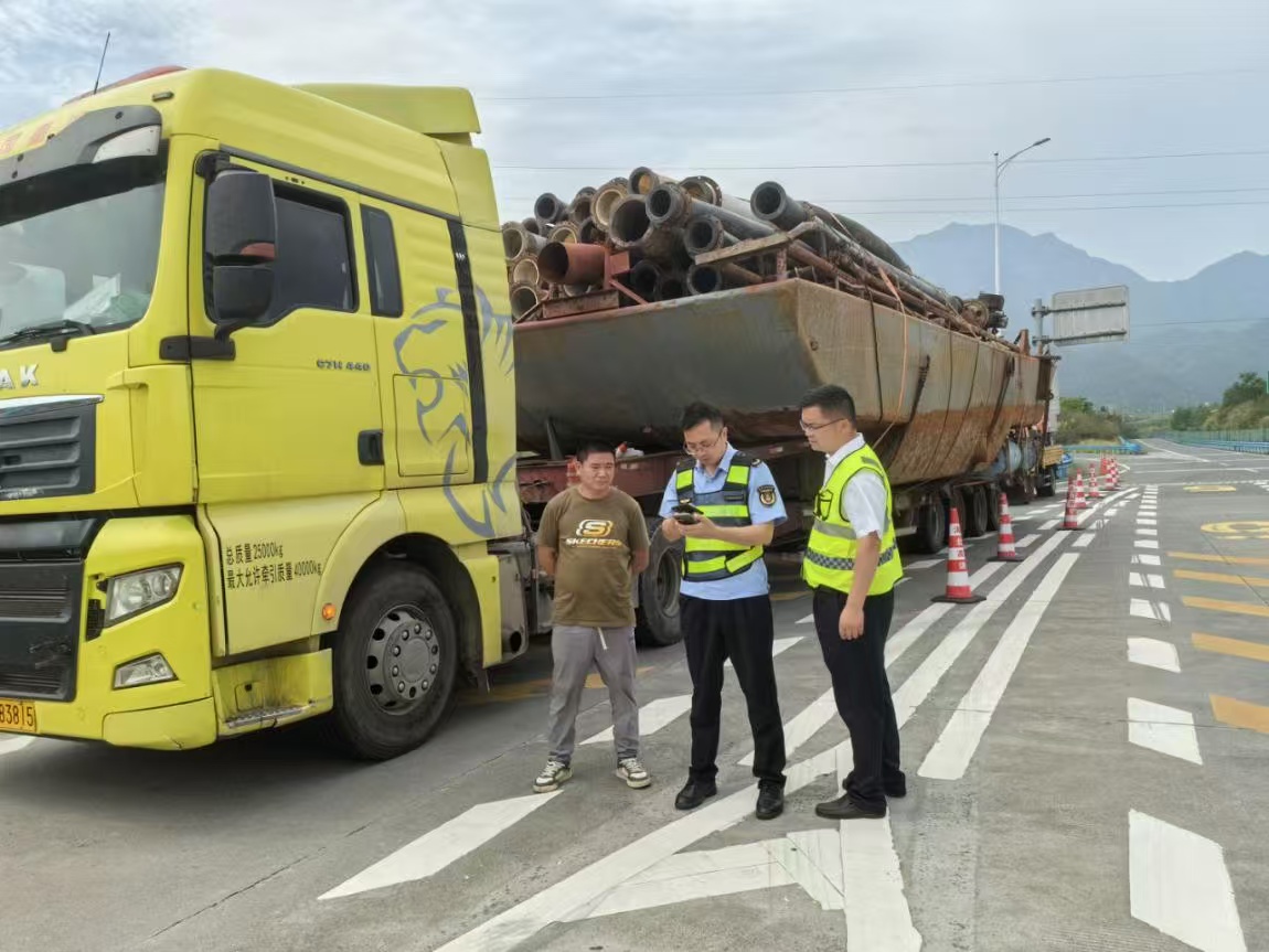 當(dāng)日上午8時(shí)左右,一輛裝載大船的大件運(yùn)輸車輛行至蔣家堰收費(fèi)站,當(dāng)班值班人員立即與管轄路段高警、路政、養(yǎng)護(hù)等部門聯(lián)動(dòng)協(xié)作,多方作業(yè)協(xié)助拆裝道口收費(fèi)設(shè)施設(shè)備,收費(fèi)站工作人員提醒往來(lái)車輛注意行車安全,同時(shí)為大件運(yùn)輸車輛司乘做好路線指引、高溫天氣服務(wù)保障等工作,確保大件運(yùn)輸車順利通過(guò)此站。