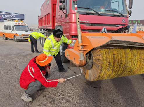 為確保國道和高速公路安全、有序、暢通筑牢交通安全屏障,全面提升即將到來的降雪、冰凍等惡劣天氣應(yīng)急反應(yīng)和快速處置能力,12月8日下午,新疆維吾爾自治區(qū)庫爾勒市公安局交通管理大隊(duì)聯(lián)合庫爾勒公路管理局、新疆交投養(yǎng)護(hù)集團(tuán)一洲路橋公司庫爾勒西養(yǎng)護(hù)管理部、中交新疆交通投資發(fā)展有限公司(以下簡(jiǎn)稱“警企”)組織民警輔警和相關(guān)人員對(duì)雪機(jī)械、車輛進(jìn)行安全檢查的同時(shí),還分別在G216線庫爾勒市塔什店山區(qū)道路、G3012線吐和高速公路西站治超站道路、G0711線烏魯木齊至尉犁段高速公路梨城南至梨城東路段開展”警企聯(lián)動(dòng)應(yīng)急演練保安全、清雪除冰防范事故保暢通“應(yīng)急演練。
