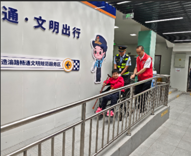 (執(zhí)法人員在服務(wù)區(qū)主動(dòng)幫助行動(dòng)不便旅客)