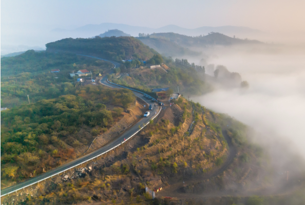 鄉(xiāng)路美,民俗興,年味在坦途上傳承綻放。沂南的鄉(xiāng)路,從不只是出行通道,更是串聯(lián)文化與鄉(xiāng)愁的紐帶。59.6公里的“愛尚沂南·紅色之旅”環(huán)線,這條獲評“全國精品旅游公路”的鄉(xiāng)村路,將竹泉村、沂蒙紅嫂家鄉(xiāng)旅游區(qū)等景點(diǎn)串珠成鏈,讓新春民俗有了更廣闊的舞臺。竹泉村里,硬化路繞著清泉翠竹延伸,游客沿著鄉(xiāng)路打卡民俗婚嫁展演、非遺竹竿舞,看村民打年糕、接財(cái)神,沉浸式感受沂蒙年味。常山莊村的紅色旅游公路旁,“重走支前路·冬享沂蒙過大年”新春大廟會熱鬧開場,扭秧歌、舞龍獅等展演輪番上演,天南海北的游客循著鄉(xiāng)路而來,在紅色熱土上邂逅傳統(tǒng)年俗。在交通運(yùn)輸局“第一書記”幫扶的黑石牛村,平整干凈的文化廣場上響起震天鑼鼓,村民們舞起長龍迎春祈福,升騰的鄉(xiāng)土氣息里,藏著鄉(xiāng)路帶來的新生活希望,也讓古老民俗在通達(dá)中代代相傳。
