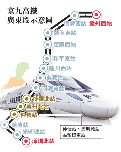 京九高鐵廣東段示意圖。(圖片來自《大公報(bào)》)