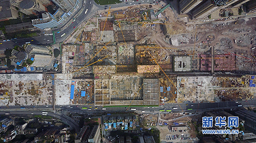 圖為4月6日拍攝的沙坪壩火車站俯視圖,目前站房主體結構已經(jīng)基本完成。