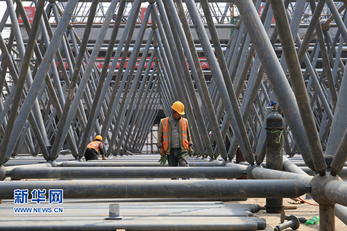 圖為工人們正在沙坪壩火車站工地上施工。