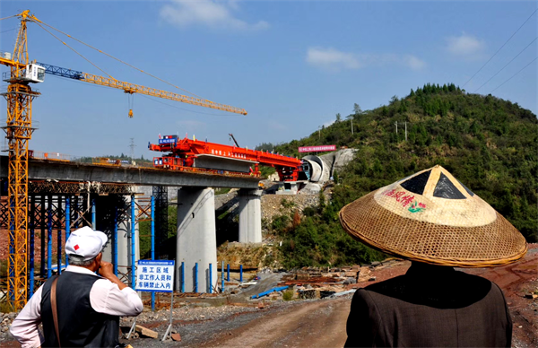 11月4日,隨著位于湖南吉首市境內(nèi)的周家寨大橋的第一片梁穩(wěn)穩(wěn)地固定在了兩個橋墩之間,張吉懷高鐵七標(biāo)段開始進(jìn)入架梁施工階段。與此同時,懷化、麻陽、古丈等地的其它九個標(biāo)段也開始了架梁施工,這意味著,湘西人民盼望著的張吉懷高鐵離通車又近了一步。
