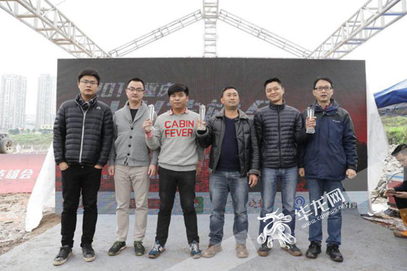 比賽結(jié)束后專業(yè)組冠亞軍風別獲得獎杯記者 楊利園 攝