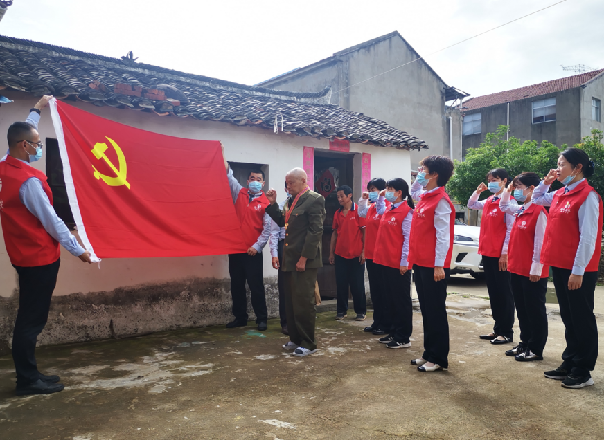 在黨旗前,向海清老人舉起右拳,帶領(lǐng)黨員一起重溫入黨誓詞,鏗鏘有力的宣誓聲在小院久久回蕩。