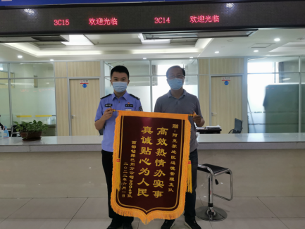 6月7日,西部鉆探巴州分公司楊某將一面“高效服務辦實事,真誠貼心為人民”的錦旗送到了阿克蘇地區(qū)行政服務大廳阿克蘇邊境管理支隊窗口民警手中,以表達對民警的感激之情。