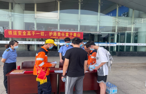 中秋小長假期間,為確保節(jié)日期間鐵路外部環(huán)境安全穩(wěn)定,中國中鐵電氣化局運管公司上海處杭州維管段江山工區(qū)會同江山站、江山工務工區(qū)、江山鐵路派出所共同走進江山火車站廣場、候車室開展《浙江省鐵路安全管理條例宣傳》活動。向來往旅客講解條例相關內容,使旅客了解到鐵路運輸安全的重要性,真正意義上做到知路、愛路、護路,確保鐵路運輸安全。(中國中鐵電氣化局運管公司上海維管處杭州維管段 李興)