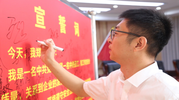 “我鄭重承諾:嚴格遵守安全法規(guī),認真履行崗位職責,自覺防范安全風險,筑牢安全防線……….”。在黨總支書記郭繼明的帶領下,全體黨員莊嚴宣誓。