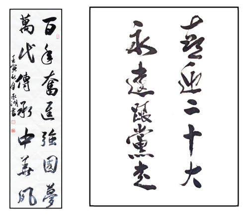 延平管理中心的梁承湖、建甌管理中心的高小榮利用業(yè)余時間,發(fā)揮所長,揮毫潑墨,用自己的方式表達對二十大的期盼之情,將對黨的愛與忠誠以墨抒情,一筆一劃強勁有力,字字情深,把骨子里的這份堅定匯入筆尖,彰顯我們的文化自信,傳遞著對未來的美好愿景。(福建省高速公路集團南平公司 趙欣奕)