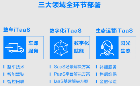 傳統(tǒng)商用車行業(yè)中,主要圍繞單一車輛運(yùn)營(yíng)效率的提升進(jìn)行技術(shù)升級(jí)及產(chǎn)品迭代。但就車輛自身的升級(jí)給物流行業(yè)用戶帶來(lái)的價(jià)值而言,很容易觸碰天花板。所以,作為后來(lái)者,如何實(shí)現(xiàn)用戶價(jià)值的跨越式提升,便成為關(guān)鍵所在。iTaaS極效一體化運(yùn)力服務(wù)便是如果科技給出的答案。所謂iTaaS,即如果卡車即服務(wù)(if Truck as a Service)。也就是說,提供商用車只是基礎(chǔ),如果科技旨在結(jié)合運(yùn)力企業(yè)用戶核心需求,圍繞新能源智慧商用車打造更具價(jià)值的全鏈服務(wù),幫助用戶全面提升運(yùn)營(yíng)效率。