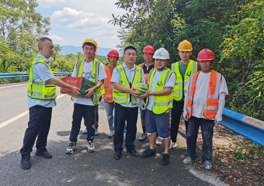 防暑降溫送清涼。“師傅們辛苦了,快來吃點(diǎn)西瓜降降暑”。巡檢辦主任將西瓜遞給堅(jiān)守在高溫下的養(yǎng)護(hù)作業(yè)人員,仔細(xì)詢問工人們的作業(yè)安全、防暑降溫等情況,把西瓜、礦泉水等降溫物品送到他們手中, 并叮囑現(xiàn)場作業(yè)人員在高溫天氣下合理安排工作時(shí)間、備好防暑降溫藥品,注意休息,避免疲勞作業(yè),同時(shí)要求現(xiàn)場作業(yè)負(fù)責(zé)人要切實(shí)做好施工現(xiàn)場安全防護(hù)措施,保證工程質(zhì)量。