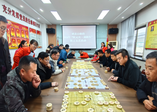 一元復(fù)始慶佳節(jié),萬(wàn)象更新履行程。在元旦佳節(jié)來(lái)臨之際,為進(jìn)一步豐富職工文化生活,增進(jìn)全段干部職工交流溝通,引導(dǎo)廣大職工以更加飽滿的工作熱情和良好的精神面貌迎接2024年,12月28日,成縣公路組織開展了2024年“慶元旦·迎新年”職工文藝系列活動(dòng),全段50余名干部職工歡聚一堂,通過(guò)開展唱歌、跳舞、詩(shī)朗誦等文藝匯演和猜謎語(yǔ)、下象棋、下跳棋等棋類益智活動(dòng),有效展示了全段職工迎接新年的良好精神風(fēng)貌,攜手營(yíng)造了歡慶、吉祥、和諧的節(jié)日氛圍。