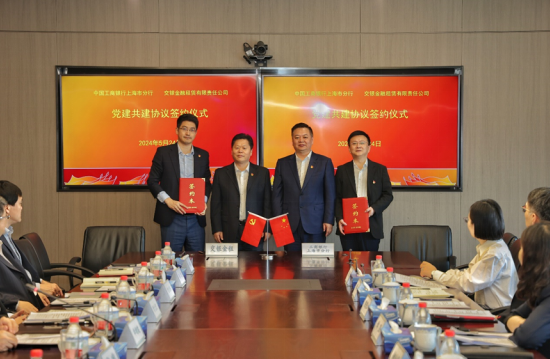 5月24日上午,交銀金租黨委與工商銀行上海市分行黨委簽署黨建共建協(xié)議,強化金融服務(wù)新質(zhì)生產(chǎn)力發(fā)展質(zhì)效”主題黨建共建活動。