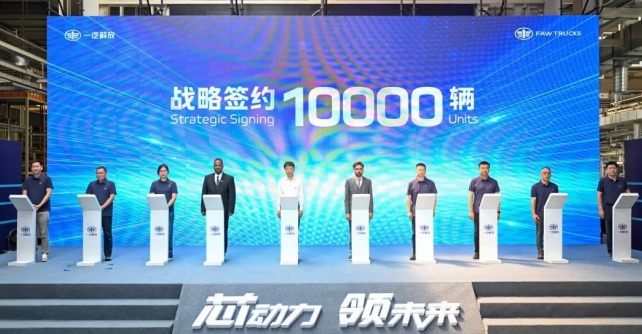 一汽解放總經(jīng)理、黨委副書記于長信與塔赫米德運(yùn)輸公司、上海安能等企業(yè)代表共同簽訂戰(zhàn)略合作協(xié)議,進(jìn)一步深化商業(yè)合作,共繪領(lǐng)航藍(lán)圖。