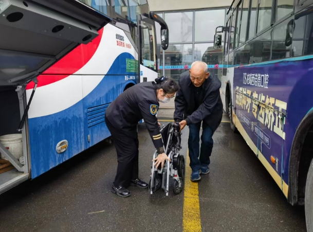 清晨的即墨汽車(chē)總站3號(hào)發(fā)車(chē)位旁,站務(wù)員董潔看到步履蹣跚的一名老年旅客被老伴兒攙扶著,輪椅停在大巴門(mén)邊,董潔快步迎上前。“大姨,您慢著點(diǎn),我扶您。”她輕握住老人的手腕,另一只手穩(wěn)穩(wěn)托住胳膊,配合老人的步速緩緩挪向車(chē)門(mén)臺(tái)階。老人臉上漾開(kāi)笑紋:“姑娘,真是麻煩你啦。”待老人坐穩(wěn),董潔又轉(zhuǎn)身幫著收攏輪椅——她弓著腰,熟練地按下折疊鍵,將輪椅輕抬進(jìn)大巴的行李倉(cāng)內(nèi),動(dòng)作利落卻又格外小心。“大爺您放心,輪椅固定好啦,到站車(chē)停穩(wěn)后您再拿。”她拍了拍車(chē)廂壁,朝兩位老人擺擺手。