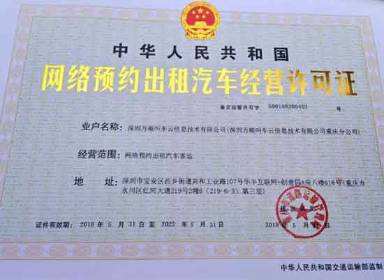 于2018年5月31日,重慶市道路運(yùn)輸管理局已向深圳萬(wàn)順叫車云信息技術(shù)有限公司重慶分公司頒發(fā)了《網(wǎng)絡(luò)預(yù)約出租汽車經(jīng)營(yíng)許可證》,萬(wàn)順叫車在重慶全市范圍內(nèi)38個(gè)區(qū)縣都取得了合法經(jīng)營(yíng)資質(zhì)。