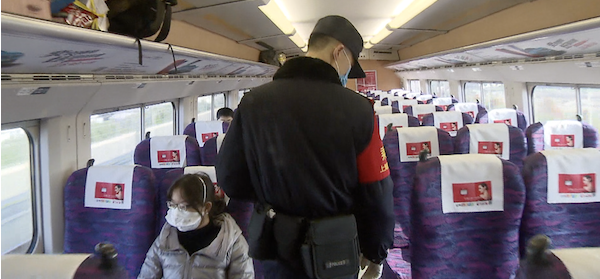 上午8點,距離發(fā)車還剩一小時,上海鐵路公安乘警王威做好了上崗前的所有準(zhǔn)備 。列車車廂屬于人員密集場所,在疫情高發(fā)期間,除了平常的值乘工作,排查列車的旅客情況成了工作的重心。