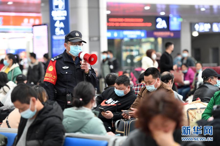 2021年2月19日,農(nóng)歷正月初八,重慶北站發(fā)送旅客5萬余人,到達(dá)旅客7萬余人。重慶北站派出所執(zhí)勤一隊(duì)警長蔡必波帶領(lǐng)警組隊(duì)員堅(jiān)守在春運(yùn)安保第一線。從維護(hù)站區(qū)治安秩序到出行安全宣傳,從可疑人員排查到危險違禁品的查處,從旅客報(bào)警處置到各項(xiàng)服務(wù)工作,鐵路民警守護(hù)著春運(yùn)返程路上的一道道關(guān)口。