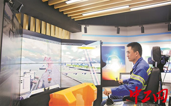 現(xiàn)在,在位于張家港港務集團港埠分公司的“黃強勞模創(chuàng)新工作室”,坐在門機操作模擬器上,戴上VR眼鏡,就仿佛置身碼頭,手握操作桿,即可進行“吊裝”操作。極大節(jié)省了門機實操練習的成本。