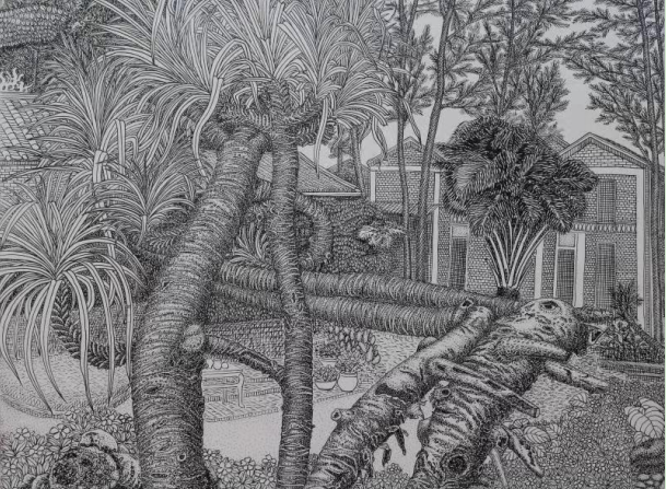 盧慧聰先生在20世紀80年代后期轉(zhuǎn)入意識流的創(chuàng)作中,盧耀聰鋼筆畫創(chuàng)作的題材、內(nèi)容相當(dāng)廣泛,大部分為景物,傳統(tǒng)民居、古建筑、特寫,內(nèi)容涉及到景物、植物、人物、動物、山水風(fēng)光名勝,花、鳥、魚、蟲,創(chuàng)意,無所不畫。小幅面,全開幅面,幾米到十米長卷的創(chuàng)作。在有限的空間,任意馳騁自己超寫實的創(chuàng)意思想、創(chuàng)新觀念和創(chuàng)造性意識!所謂意識流鋼筆畫,就是按照自己主觀的意識、意志、觀念、觀點、思想、認識去畫出來的鋼筆畫并形成了自己獨一無二、獨樹一幟的鋼筆畫流派。運用構(gòu)圖中隱含的抽象語言:點、線、面、塊的對比,外輪廓線節(jié)奏感的調(diào)度,色調(diào)氣氛的把握等,通過極寫實意識的表現(xiàn)技法塑造出完美的個性。