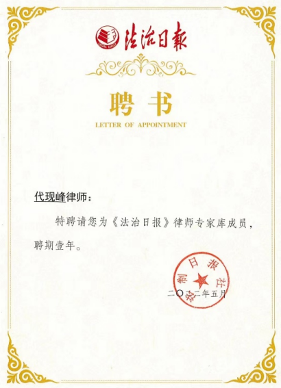 律媒聯(lián)動(dòng)再啟新篇,9月8日2022年度《法治日?qǐng)?bào)》律師專家?guī)炱溉蝺x式順利舉行,中國(guó)交通運(yùn)輸協(xié)會(huì)法律工作委員會(huì)秘書長(zhǎng)代現(xiàn)峰入選2022年度《法治日?qǐng)?bào)》律師專家?guī),并由法治日(qǐng)?bào)頒發(fā)聘書。此次受聘是一項(xiàng)崇高的榮譽(yù),更是一份沉甸甸的責(zé)任,同時(shí)也是對(duì)業(yè)務(wù)能力的再提升。
