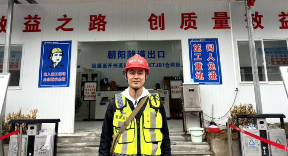 頭戴紅色安全帽,身穿反光背心,挎著一個棕色工具包,手拿強光手電,緊盯著隧道施工中的巖石的變化情況,直到當(dāng)班開挖掘進全部安全結(jié)束后,他才拖著疲憊的身軀,走出透著亮光的隧道洞口。他就是重慶建工交建集團巫溪至開州高速公路TJB1標(biāo)段二工區(qū)的技術(shù)員、共產(chǎn)黨員李穎。