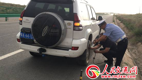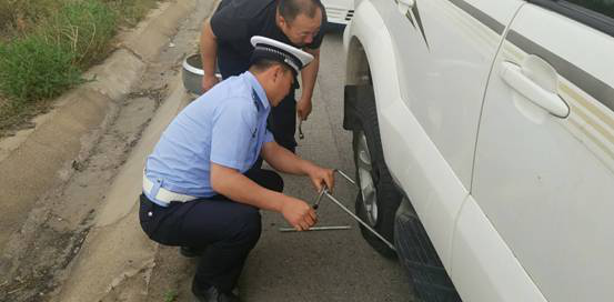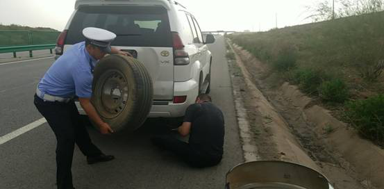 在得知情況后,民警迅速在現(xiàn)場后方設置好減速警告標志和反光錐筒,指揮疏導后方交通,引導后方來車減速安全行駛。在做好各項安全措施之后,民警立即幫駕駛員開始更換輪胎,前后共用了二十多分鐘,終于將輪胎換好,駕駛員激動地握住民警的手說:“非常感謝你們,沒有你們的及時相助今天就麻煩了,路過的人們也不愿意停車,真的是太感謝你們了”。民警說,這是我們應該做的,車壞在路上,放誰身上都著急,幫個忙是應該的,在駕駛員準備出發(fā)時,民警對沿黃公路的路況及周邊的加油站和修理鋪進行了簡單的介紹,并將自己的手機號留給了司機,如果在沿黃路上遇到困難可以打電話進行求助,我們每天24小時都有值班人員。