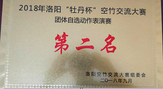 2018年9月21日—23日在張隊長的帶領(lǐng)下,參加洛陽“牡丹杯”空竹交流大賽(一百多支隊伍參加比賽)榮奪第二名。