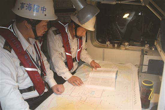 夜間搜救,成寶剛在海圖上鎖定搜救范圍。
