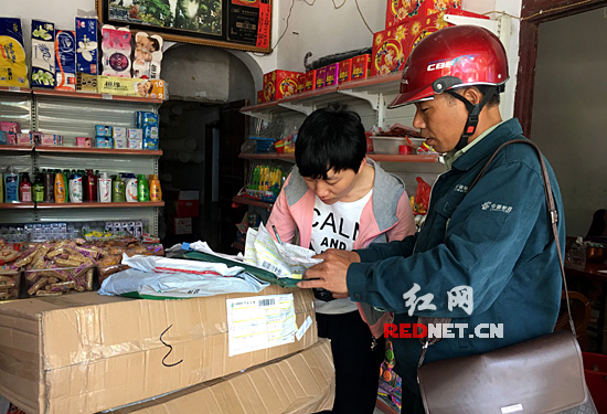 徐永輝將包裹送達(dá)花苗村一村民手中。村民盛贊徐永輝服務(wù)周到、熱情。