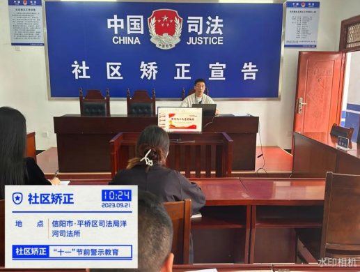 為持續(xù)加強(qiáng)“十一”國慶節(jié)期間社區(qū)矯正監(jiān)管工作,實(shí)時(shí)掌握社區(qū)矯正對(duì)象思想動(dòng)態(tài)和活動(dòng)情況,確保社會(huì)和諧穩(wěn)定,2023年9月21日上午,河南省信陽市平橋區(qū)司法局洋河司法所組織轄區(qū)社區(qū)矯正對(duì)象開展國慶節(jié)前集中警示教育活動(dòng)。