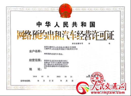 (萬順叫車獲杭州市網(wǎng)約車經(jīng)營許可證)
