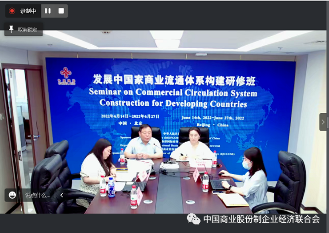 2022年6月19日,由商務(wù)部主辦,商務(wù)部國際商務(wù)官員研修學(xué)院與中國商業(yè)股份制企業(yè)經(jīng)濟(jì)聯(lián)合會聯(lián)合承辦的“發(fā)展中國家商業(yè)流通體系構(gòu)建研修班”舉行了線上企業(yè)交流會。出席今天會議的有人民交通雜志社社長鄭德嶺先生,中奧集團(tuán)董事長、中國商業(yè)股份制企業(yè)經(jīng)濟(jì)聯(lián)合會智能科技委員會主任李付軍先生以及線上的官員代表們。