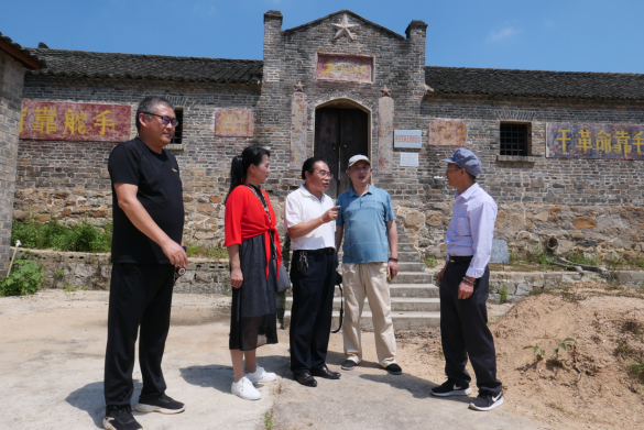(在新五師革命舊址前信陽李氏文化研究會會長李正(左三)和同志們在一起學(xué)習(xí)討論紅色歷史時的情景)