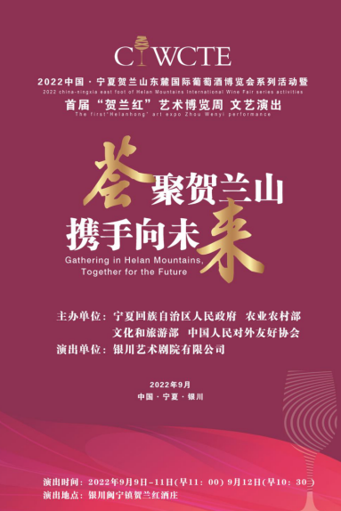 本次活動(dòng)由寧夏回族自治區(qū)文化和旅游廳指導(dǎo),銀川市文化旅游廣電局、西夏區(qū)人民政府主辦,銀川市葡萄酒產(chǎn)業(yè)發(fā)展服務(wù)中心、銀川市西夏區(qū)文化旅游體育廣電局、寧夏國(guó)際葡萄酒交易博覽中心(有限公司)、銀川市賀蘭山東麓葡萄酒產(chǎn)業(yè)聯(lián)盟協(xié)辦,銀川藝術(shù)劇院有限公司執(zhí)行。