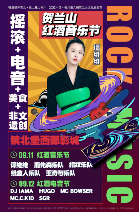 賀蘭山紅酒音樂(lè)節(jié)將于9月11日在鎮(zhèn)北堡西部影城激情開(kāi)唱,譚維維、鹿先森樂(lè)隊(duì)、指紋樂(lè)隊(duì)、紙盒人樂(lè)隊(duì)、王奇與樂(lè)隊(duì)等國(guó)內(nèi)著名藝人及樂(lè)隊(duì)齊聚影城,帶給觀眾極具視聽(tīng)享受的賀蘭山搖滾之夜;9月12日的紅酒電音節(jié)將邀請(qǐng)區(qū)內(nèi)外知名DJ/MC,共同打造賀蘭山下的電音盛宴。