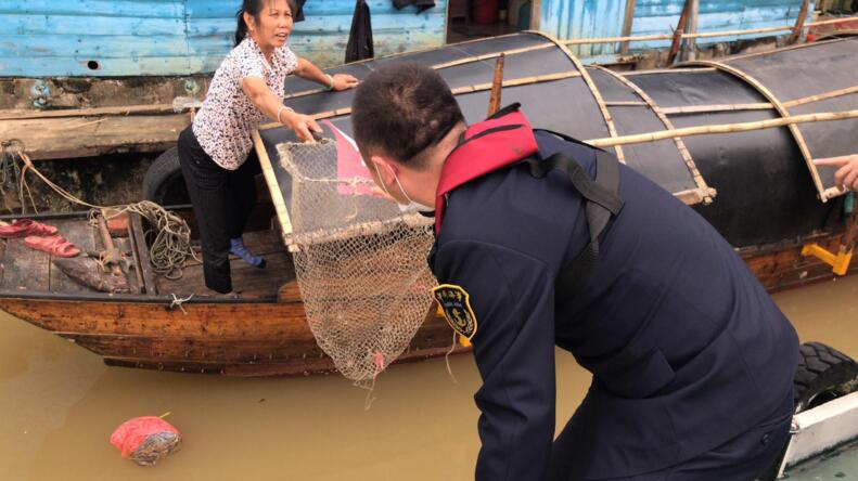 “綏江口船閘,我是海巡09546船,現(xiàn)將進入綏江,請求打開船閘,給予放行!”4月8日,聯(lián)合巡查組一行乘海巡艇自北江出發(fā)進入綏江河段拉開了聯(lián)合巡航序幕。