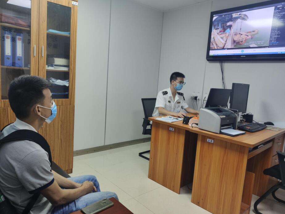 執(zhí)法人員對違法船員進(jìn)行法規(guī)宣教