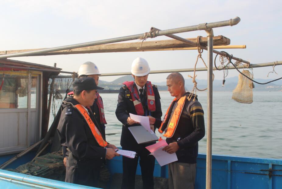 海事執(zhí)法人員向漁民發(fā)放《水上安全告知書》