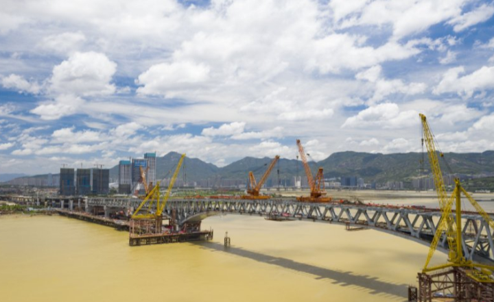 6月15日,福建省首座公軌兩用大橋——福州道慶洲過江通道跨江主橋成功合龍。這也是國內(nèi)跨徑最大的變高度連續(xù)鋼桁結(jié)合梁橋。