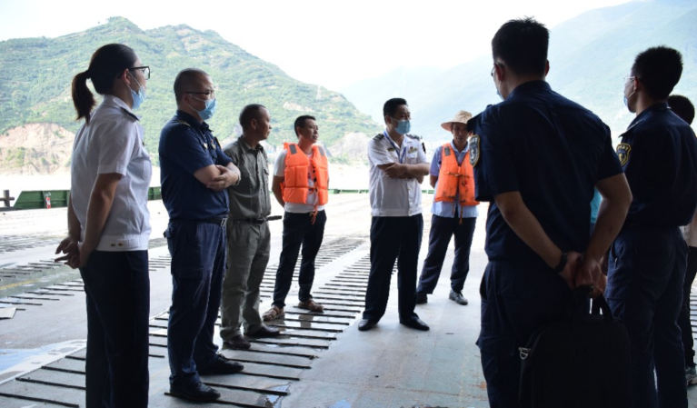 8月25日,宜昌海事局通航處孫澤宏處長和歸州海事處鄧濤處長帶隊(duì),對(duì)靠泊在郭家壩汽渡碼頭施工船舶進(jìn)行施工作業(yè)進(jìn)場前安全檢查,并對(duì)參與施工人員進(jìn)行了安全宣傳和水上知識(shí)培訓(xùn)。隨后,前往施工水域現(xiàn)場,對(duì)現(xiàn)場環(huán)境以及施工作業(yè)安排計(jì)劃開展了細(xì)致考察,確認(rèn)施工作業(yè)安全穩(wěn)妥。8月26日清晨,執(zhí)法人員提前達(dá)到施工作業(yè)水域現(xiàn)場,對(duì)禁航水域進(jìn)行清場警戒,并指揮安排上下行船舶至適當(dāng)水域錨泊等候。